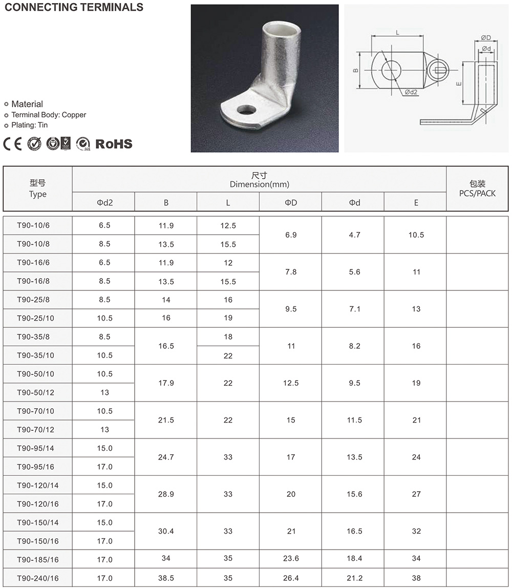 T90°銅管端子