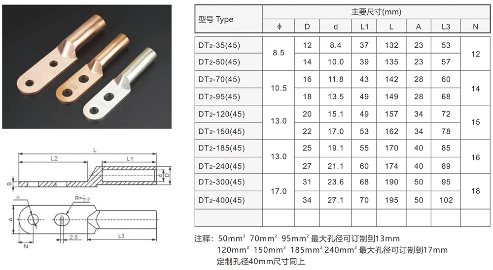 DT?系列銅雙孔型接線端子