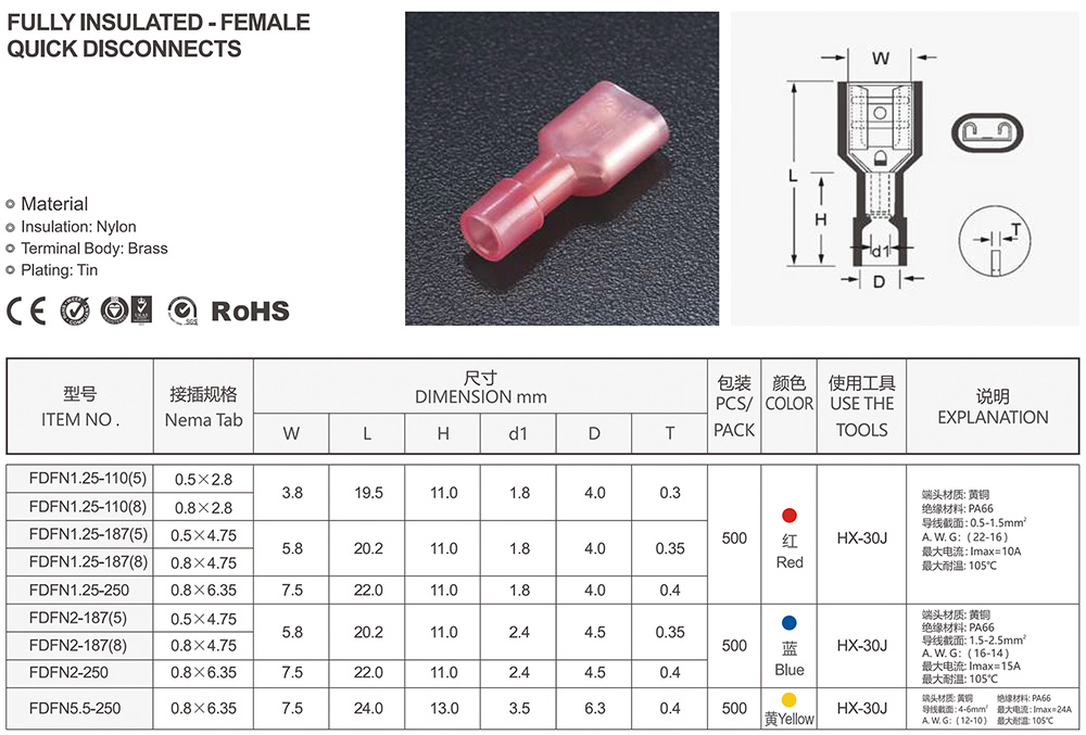 圓形預(yù)絕緣端頭(RV型)
