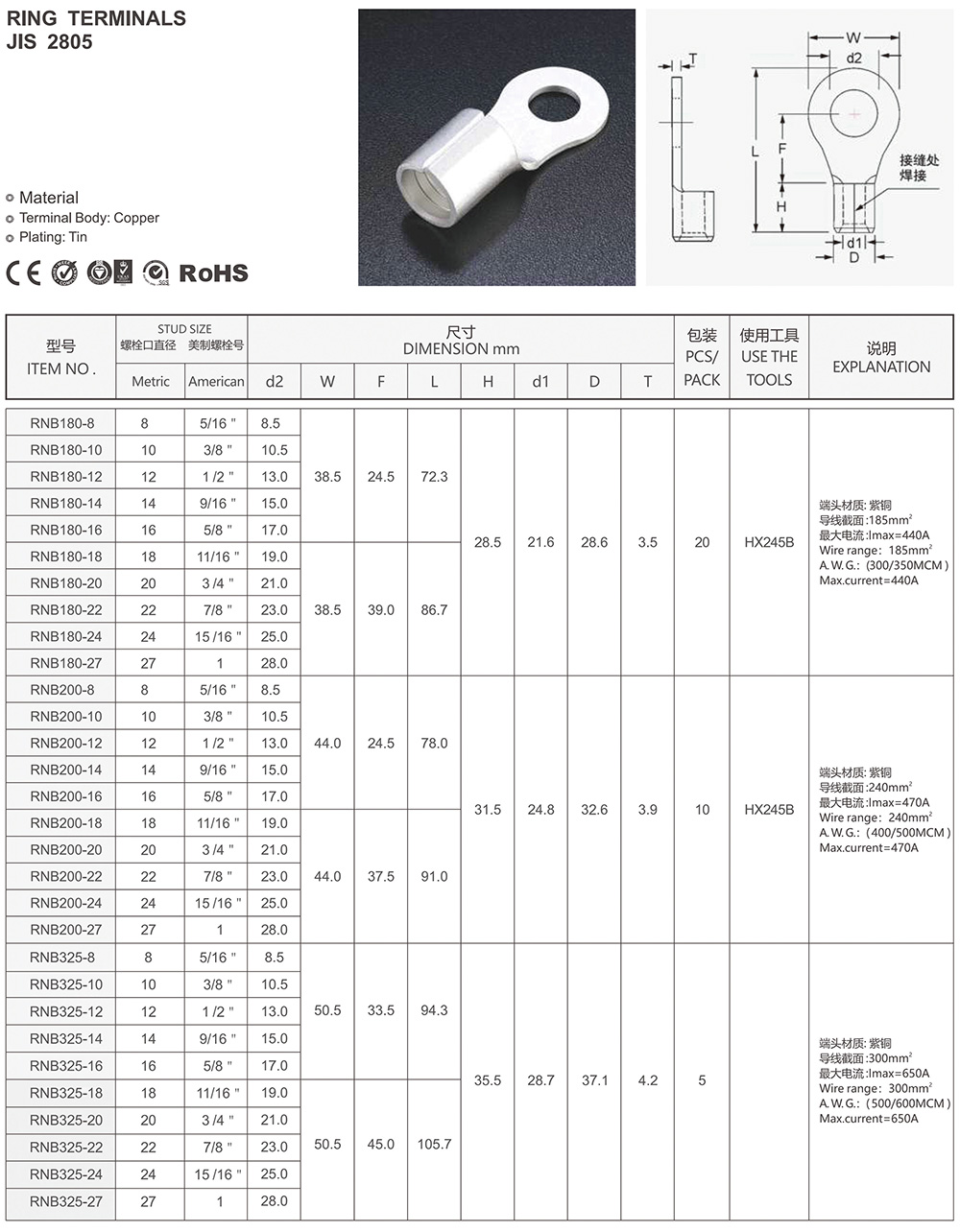 雙孔管型端子